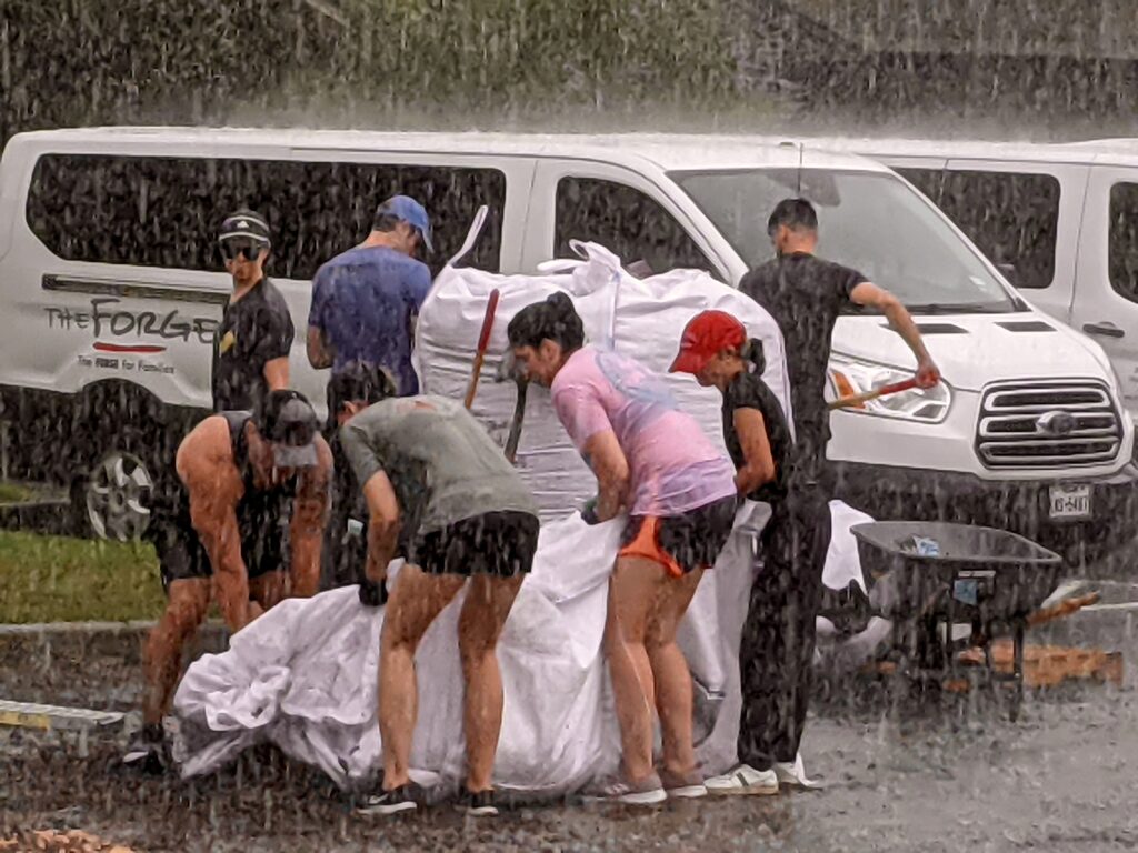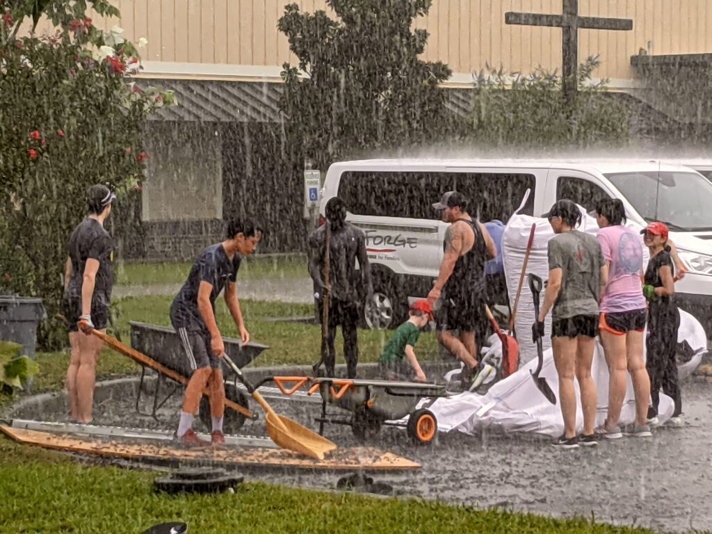 This past Saturday, October 2nd, City Youth participated in a service project for one of our mission partners, The FORGE for Families. The FORGE for Families’ focus is on the long-term development of students in Houston’s Third Ward by providing an encouraging after school environment. The City Youth’s specific service project was focused on the campus playground. The FORGE received a donation of new mulch for their playground and in an effort to cut costs, they asked for volunteers to help transport the mulch from the incoming shipment packages to the playground. Working alongside other Houston churches, Second Baptist and City of Refuge, City Church’s youth really impressed the group with their hard work and leadership skills. Using shovels, wheelbarrows, rakes, and heavy lifting, and despite the downpour of rain, the group was determined to see the project to completion. By noon on Saturday, The FORGE for Families has a new, ready-to-use playground floor that the Third Ward kids will enjoy this week – this is fun to envision! I am very proud of how the youth represented City Church – their diligent efforts, commitment to completing the project, and teamwork were outstanding! This project was the first of a new City Youth initiative launching this year called Servant Saturdays. We plan to have one Servant Saturday a month going forward, hope to see you there!